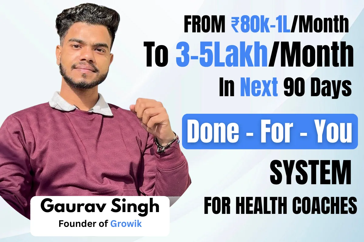 Hi, I'm Gaurav Singh, a business growth strategist specializing in the health and wellness space. Over the past few years, I've worked closely with health coaches to transform their practices from inconsistent income to predictable, scalable systems - helping them attract premium clients, streamline their operations, and grow without burnout.